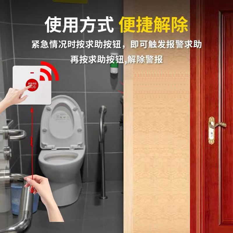 Function: NB IoT communication; All China Unicom supports the telecommunications AEP platform; One click for help; Pull rope for help, waterproof design, can be installed in bathrooms and other places, APP push alarm, low battery alarm; Device heartbeat support server, mobile phone APP, WeChat official account, phone, SMS alarm push, two No. 7 batteries, ultra-low power consumption, long press on/off function.