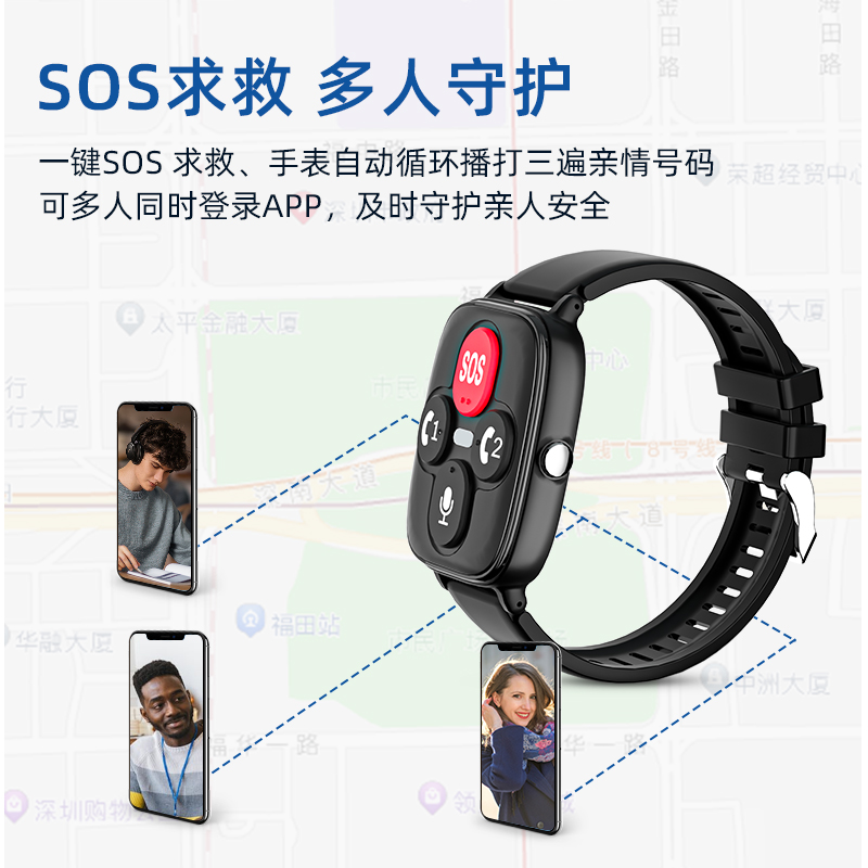 Features: making phone calls, ringtone search, no disturbance, one click voice chat, 5-7 days of card insertion, 4G positioning, indoor positioning, electronic fence, real-time walking trajectory, GPS+Beidou, rejecting unfamiliar calls, magnetic charging, call reminder, live voice reminder, safe area, contact book, IP66 waterproof, easy to remove and change watch strap, increase button, high volume, temperature detection, heart rate, blood pressure, oxygen, health step, one click S05 Medication reminder, fall alarm, sleep detection, alarm clock reminder, positioning frequency, and quick callback