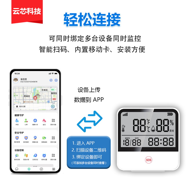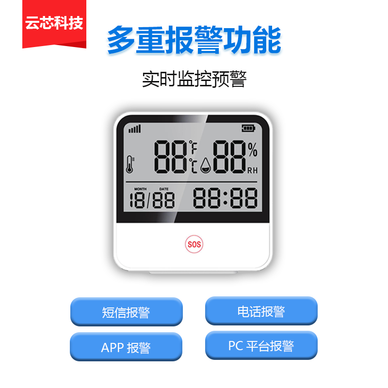 Function: Using NB IoT module to communicate with the central platform, facilitating networking; Automatically determine the alarm status based on the alarm threshold, and automatically send alarm data to the platform through the NB module; Large screen segment code LCD, clear and intuitive; Flexible setting of upper and lower limits of temperature and humidity; Automatically refresh the display of temperature and humidity changes; SOS one click alarm.