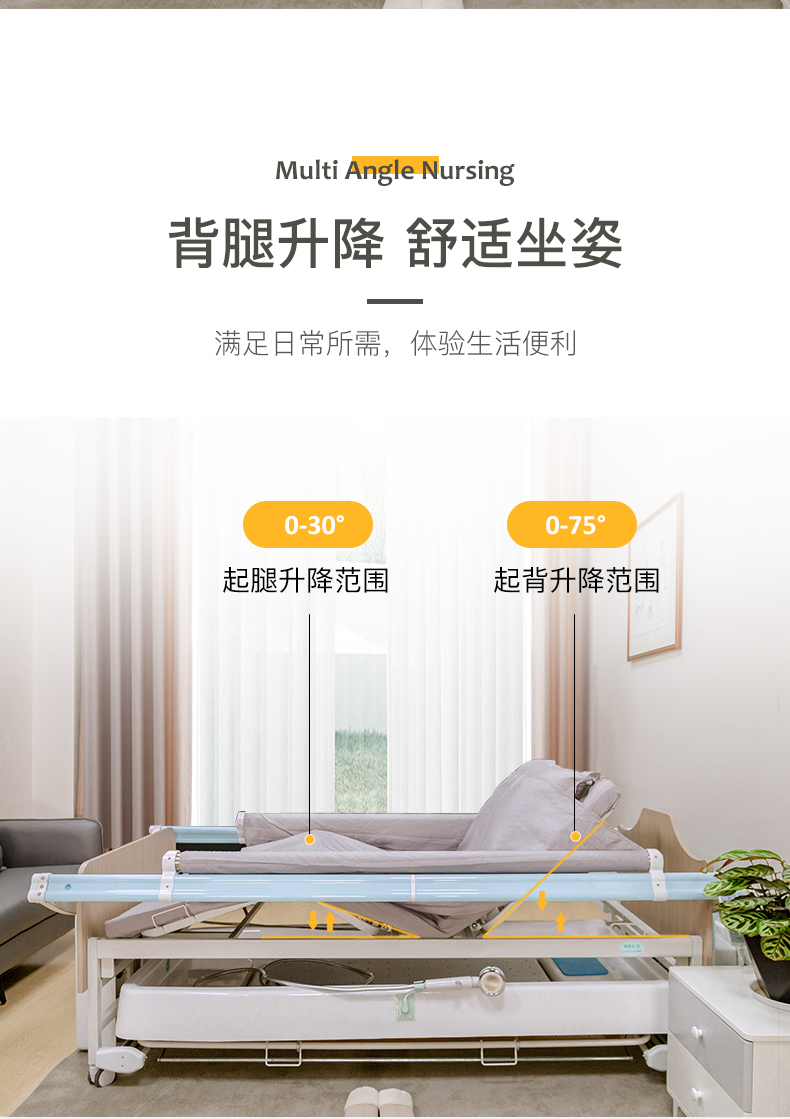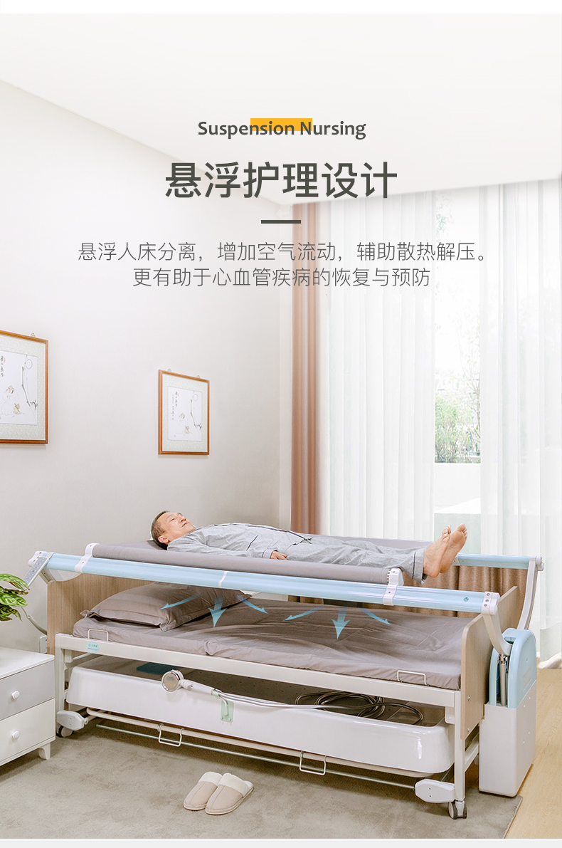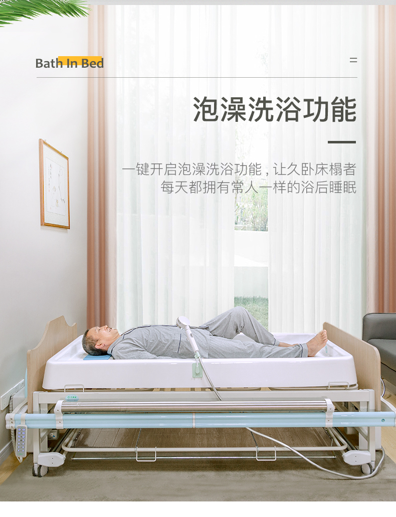 1) Bath function (optional) 2) Flexible Tuming Function 3) Suspended care function 4) Back exercise function 5) Leg Movement Function 6) Back Raising and Leg Lifting Function