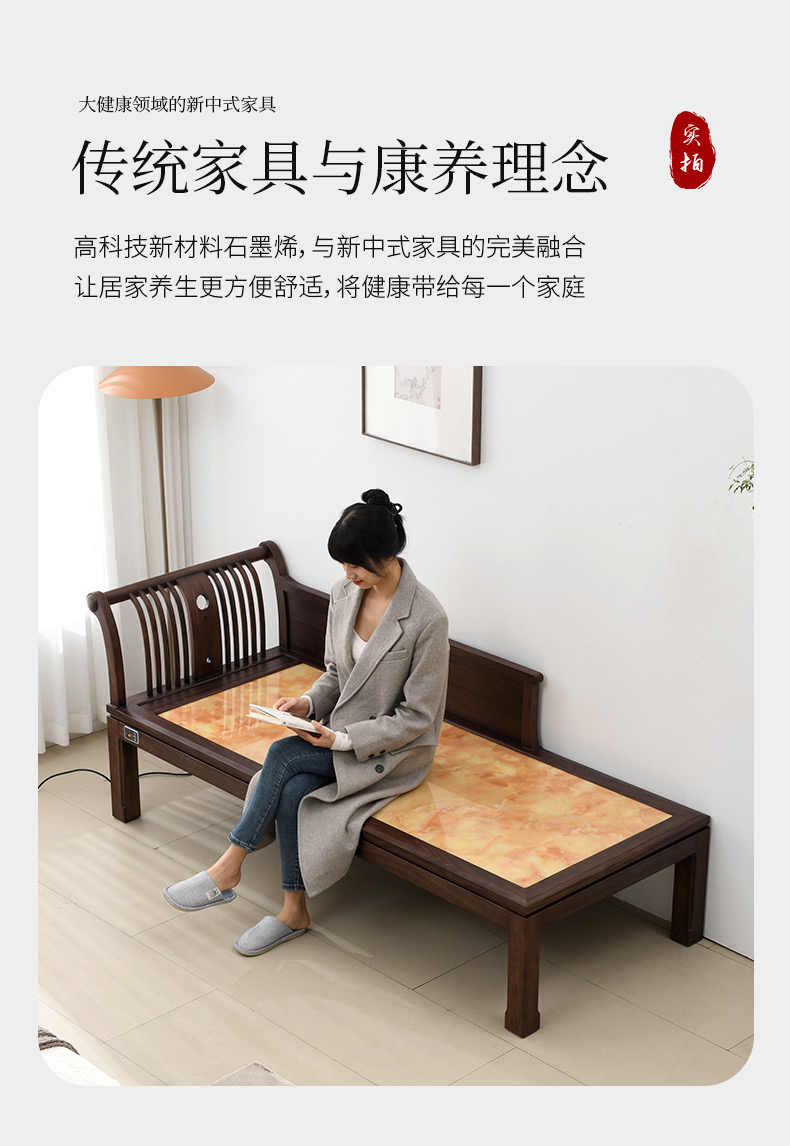 Graphene Health Care Noble Consort Chair, a new way of healthy living. The perfect integration of high-tech new material graphene and new Chinese style furniture integrates technology into life, delivering health and warmth, making home health more convenient and comfortable, achieving lazy style health preservation, sitting and lying down to be healthy, and safeguarding the health of the whole family.