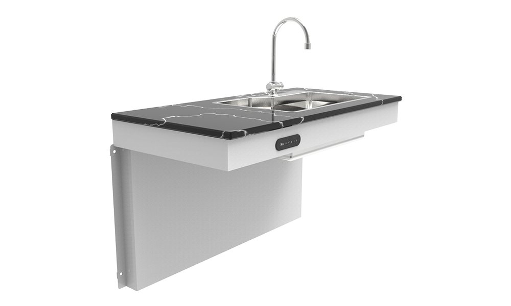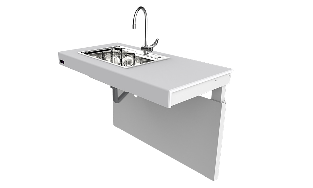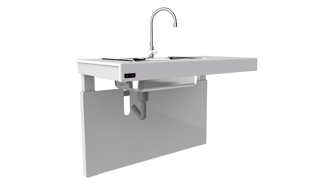 KS-1260 is a height-adjustable sink suitable for kitchens. It is the design of a height-adjustable lifting column to provide stepless adjustment with a stroke of 250mm and a minimum height of 700mm. It is suitable for any wheelchair user and children. The sink can be easily reached and used. The kitchen sink can be raised and lowered at the touch of a button, which is very convenient. The products of the barrier-free life series are all combined with lifting technology, developed and applied in many fields, such as kitchen, bathroom, office furniture, etc.