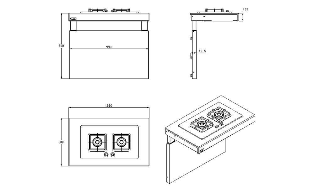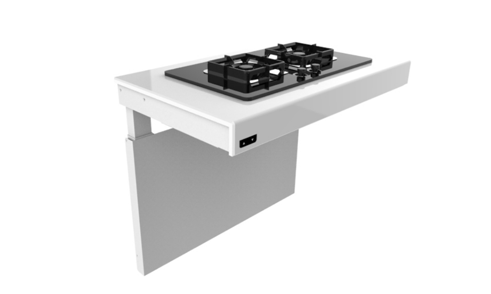 The height adjustable kitchen cooktop lifting system height range is 700mm (27.6’’) - 950mm (37.4’’), whether people need to be in a seated or standing position, it makes the kitchen cooktop more functional for everyone. Possible for users to adjust the cooktop height to suit individual needs. The worktop is “universal-friendly” as space is left open below the worktop for knees and legs; in which the wheelchair users can freely access the cooking strove by themselves. The electrically height-adjusted kitchen cooktop is equipped with reliable safety stop systems that ensure safe operation without the risk of pinching or crushing. In specific, a safety sensor is placed under the front edge of the worktop/bottom of the top cabinet. If anything touches the sensor, the lifting stops.