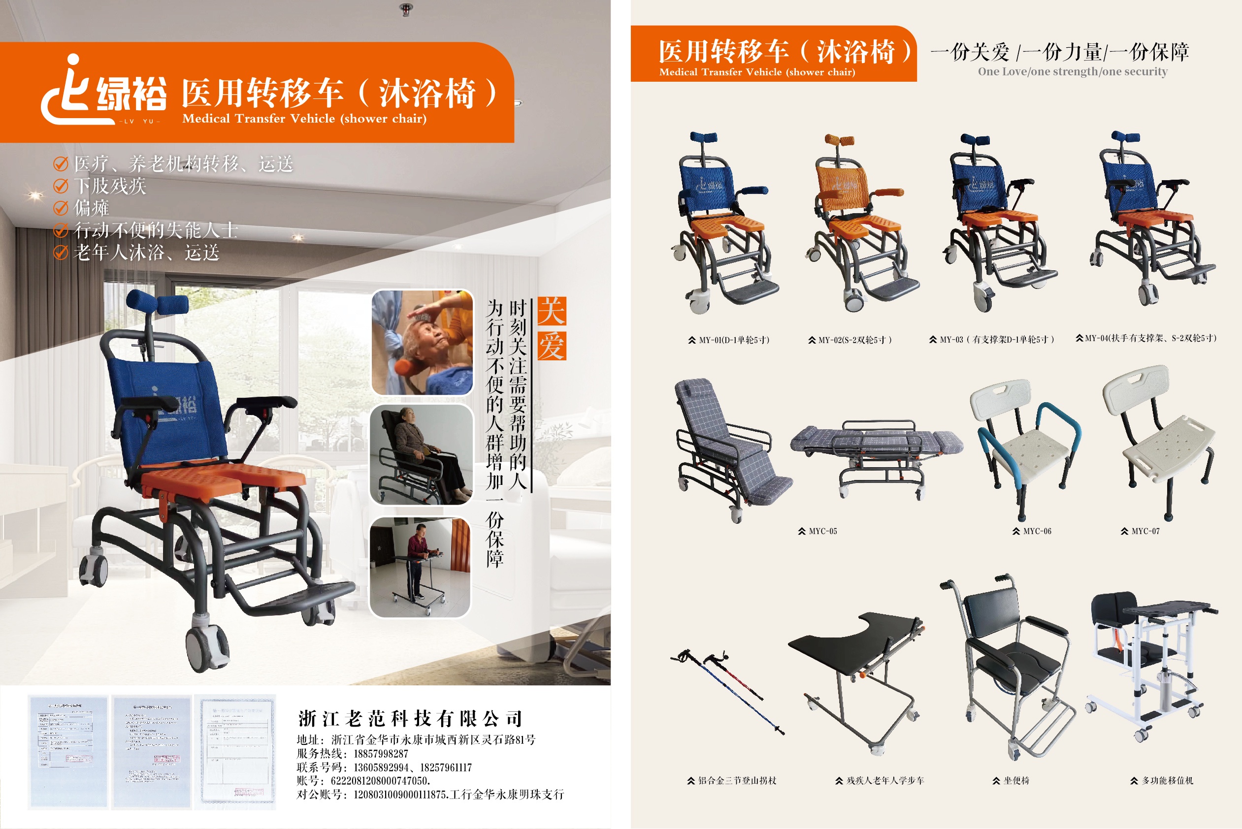 Multi-functional medical transfer car (shower chair), manual push cart (shower bed) and simple shower chair. Convenient for nursing staff to move beds, lift and bathe for disabled persons, reducing the labor intensity of nursing staff. And all adopt high-strength aluminum alloy materials, resistant to acid and alkali, anti-rust, large diameter strong thickness, anti-impact ultra-durable