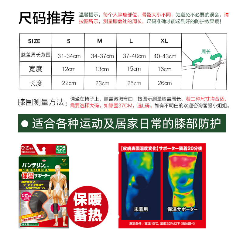 It is made of Self-Thermal Fiber®, a moisture-wicking heat-generating material, which warmly supports the knees even in cold environments, making going up and down stairs easy.