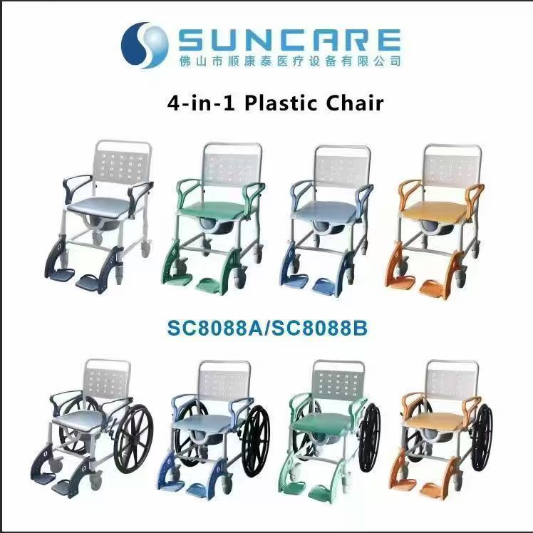 Full Hard Plastic Frame, Nylon + Fiber Material, Function: Bath Chair + Commode Chair + Toilet Booster + Wheelchair 4-in-1