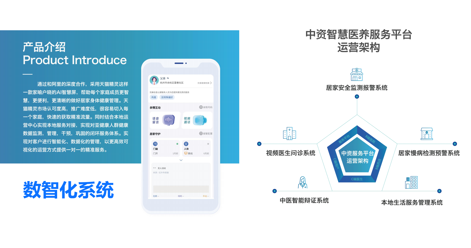 The Intelligent Medical and Elderly Care Digital Sandbox is a digital infrastructure developed by the Tmall Genie Smart Medical and Elderly Care Service Platform. It integrates various intelligent technologies for the visual presentation of data managed by the operations center. The large-screen system features capabilities such as service/contracted population data analysis, real-time updates of work orders, real-time monitoring of multidimensional health data, and home and health risk alerts. It can monitor and analyze the operation of medical and elderly care services in real time, greatly improving the quality and efficiency of services in the operations center and maximizing intelligent leadership.