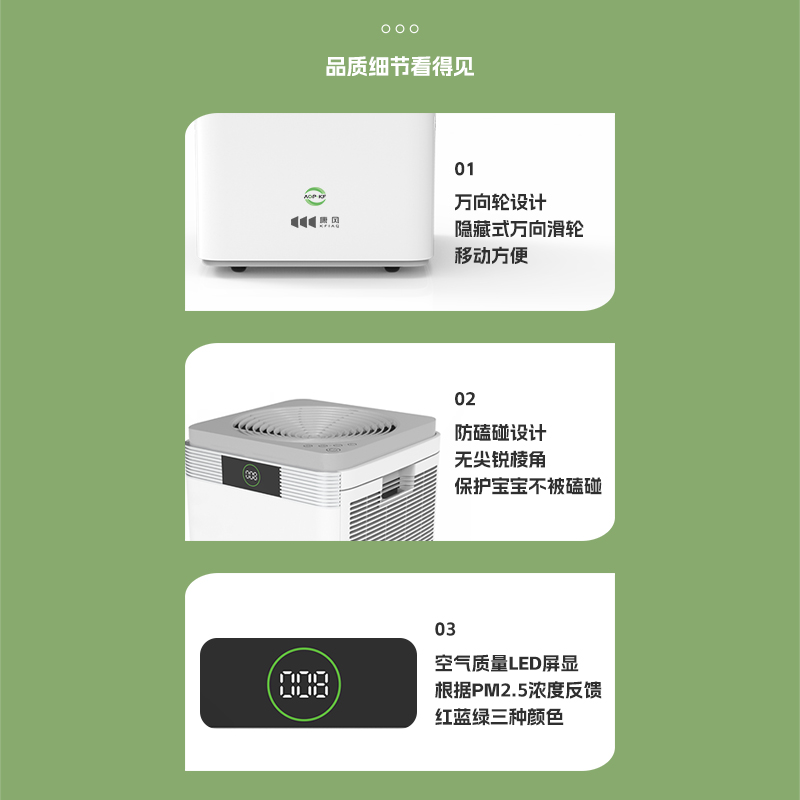 Efficient formaldehyde removal rate of 99%, 30 minute sterilization rate>99.99% Three layer filter with double-sided air intake, professional medical grade air disinfection machine Effectively reduce the incidence of respiratory infectious diseases and cross infections among susceptible populations such as the elderly and children Effectively alleviate respiratory related diseases such as rhinitis, asthma, and chronic pharyngitis. Rapid removal of pathogenic microorganisms, efficient killing of viruses, bacteria, and fungi, high purification efficiency, no secondary pollution, and significant sterilization effect The same purification black technology for the Winter Olympics, with visible strength