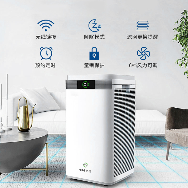 Efficient formaldehyde removal rate of 99%, 30 minute sterilization rate>99.99% Three layer filter with double-sided air intake, professional medical grade air disinfection machine Effectively reduce the incidence of respiratory infectious diseases and cross infections among susceptible populations such as the elderly and children Effectively alleviate respiratory related diseases such as rhinitis, asthma, and chronic pharyngitis. Rapid removal of pathogenic microorganisms, efficient killing of viruses, bacteria, and fungi, high purification efficiency, no secondary pollution, and significant sterilization effect The same purification black technology for the Winter Olympics, with visible strength