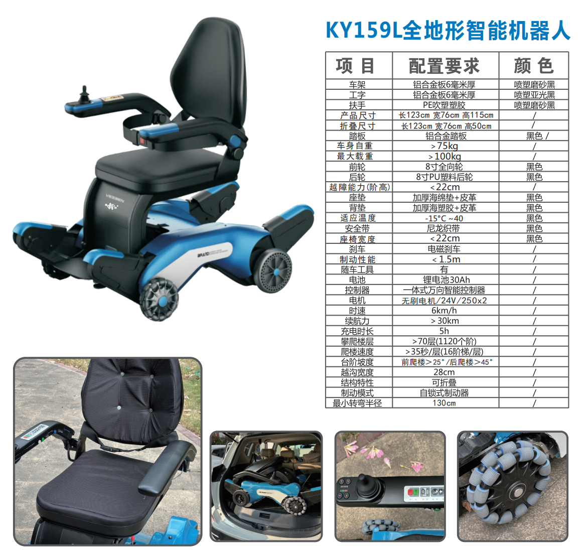 核心技術(shù):It adopts a unique wheel set /track structure combined with intelligent three-mode balance control to realize a barrier-free travel system. 核心功能:It can climb various types of stairs (straight stairs, spiral stairs, etc.) smoothly and safely; It has an excellent ability to climb about 1120 steps outdoors and cross gaps of 280mm, and can adapt to walking on complex roads such as potholes, grasslands, gravel and thresholds. 特點(diǎn):Equipped with a high-power motor, strong driving force, efficient shock absorption system and stable structure; It automatically maintains balance during the stair-climbing process to ensure safety and comfort. 目標(biāo)用戶(hù):Wheelchair users who need to frequently deal with stairs or have outdoor activity needs.