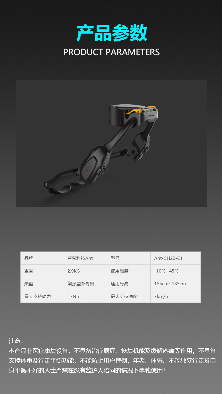 Ant-CH步行輔助機(jī)器人,是一款提供髖關(guān)節(jié)助力的行走增強(qiáng)輔助機(jī)器人設(shè)備。內(nèi)置多種傳感器,檢測并分析人體運(yùn)動狀態(tài)和意圖,驅(qū)動兩側(cè)動力模塊輸出動力,輔助大腿肌肉伸縮,減少人體肌肉負(fù)擔(dān),從而實現(xiàn)提高人體體能及續(xù)航能力的目標(biāo)。