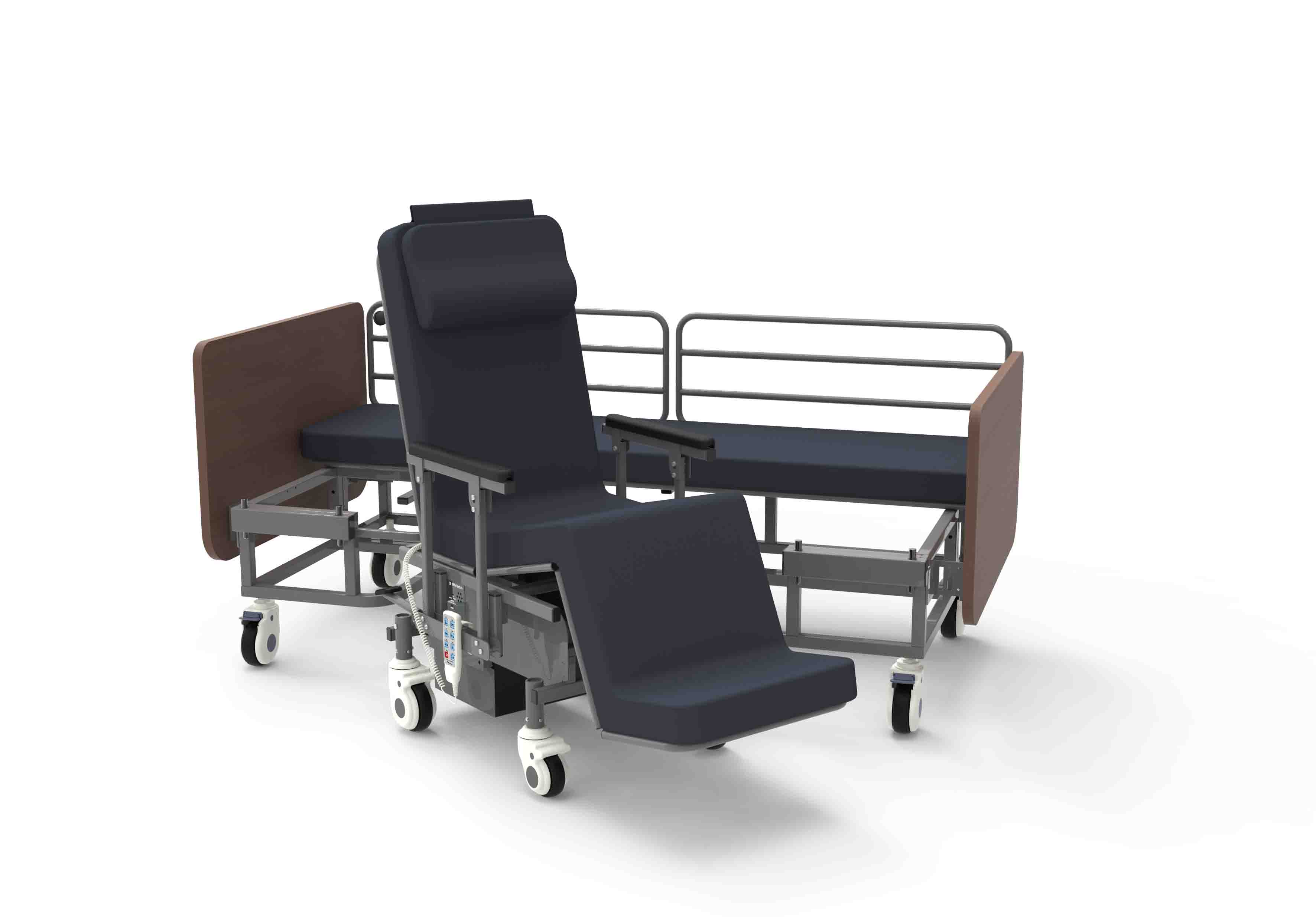 1.半自動(dòng)床椅一體化機(jī)器人=【多功能護(hù)理床】+【智能輪椅】+【手動(dòng)移位】+【感知終端】+【物聯(lián)網(wǎng)終端】+【安全報(bào)警】 2.體位轉(zhuǎn)移安全省力,減輕護(hù)理勞動(dòng)強(qiáng)度 3.輪椅與床對(duì)接、手動(dòng)床椅分離,具備多功能護(hù)理床和智能輪椅功能 多傳感器融合、云端互聯(lián)技術(shù)于一體 4.支持遠(yuǎn)程操作和狀態(tài)監(jiān)測(cè),電源及系統(tǒng)智能管理和監(jiān)測(cè) 5.外設(shè)標(biāo)準(zhǔn)化接口,便于各種體征數(shù)據(jù)采集及擴(kuò)展功能 6.環(huán)保材料,防水抗菌,舒適溫馨