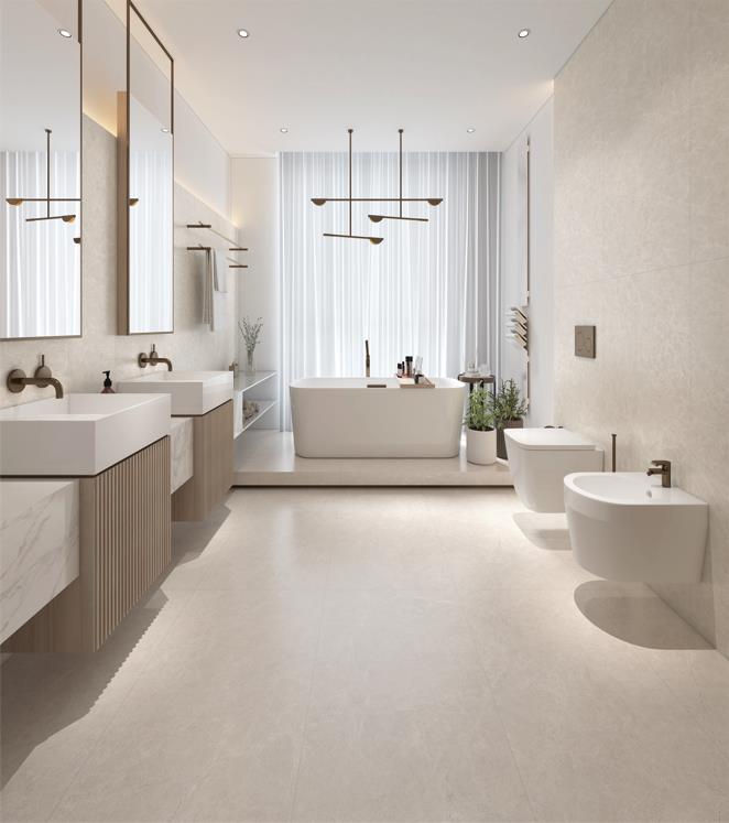 米黃色的基底與錯落有致的紋理交織,磚面細膩而豐富,呈現(xiàn)出溫文爾雅的氣質(zhì)。