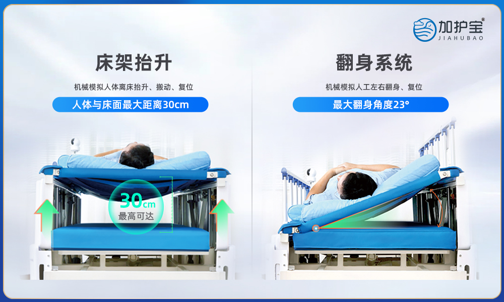 智慧康復(fù)護(hù)理床機(jī),專為長期臥床人士設(shè)計(jì)。原創(chuàng)核心技術(shù),創(chuàng)新雙層床體結(jié)構(gòu),輕松實(shí)現(xiàn)床上淋浴、浸浴、洗頭、洗腳、會(huì)陰沖洗、大小便處置、更換紙尿褲簡(jiǎn)化日常清潔衛(wèi)生工作;通過床架抬升、自動(dòng)翻身、模擬床下坐起、特氏位、反特氏位等功能可根據(jù)需要進(jìn)行個(gè)性化體位擺放及康復(fù)鍛煉,從而有效預(yù)防和治療壓瘡、墜積性肺炎、循環(huán)功能障礙等臥床并發(fā)癥。 智慧康復(fù)護(hù)理床機(jī)療效確切、省人增效、省錢增效,是失能人日常護(hù)理新標(biāo)配。