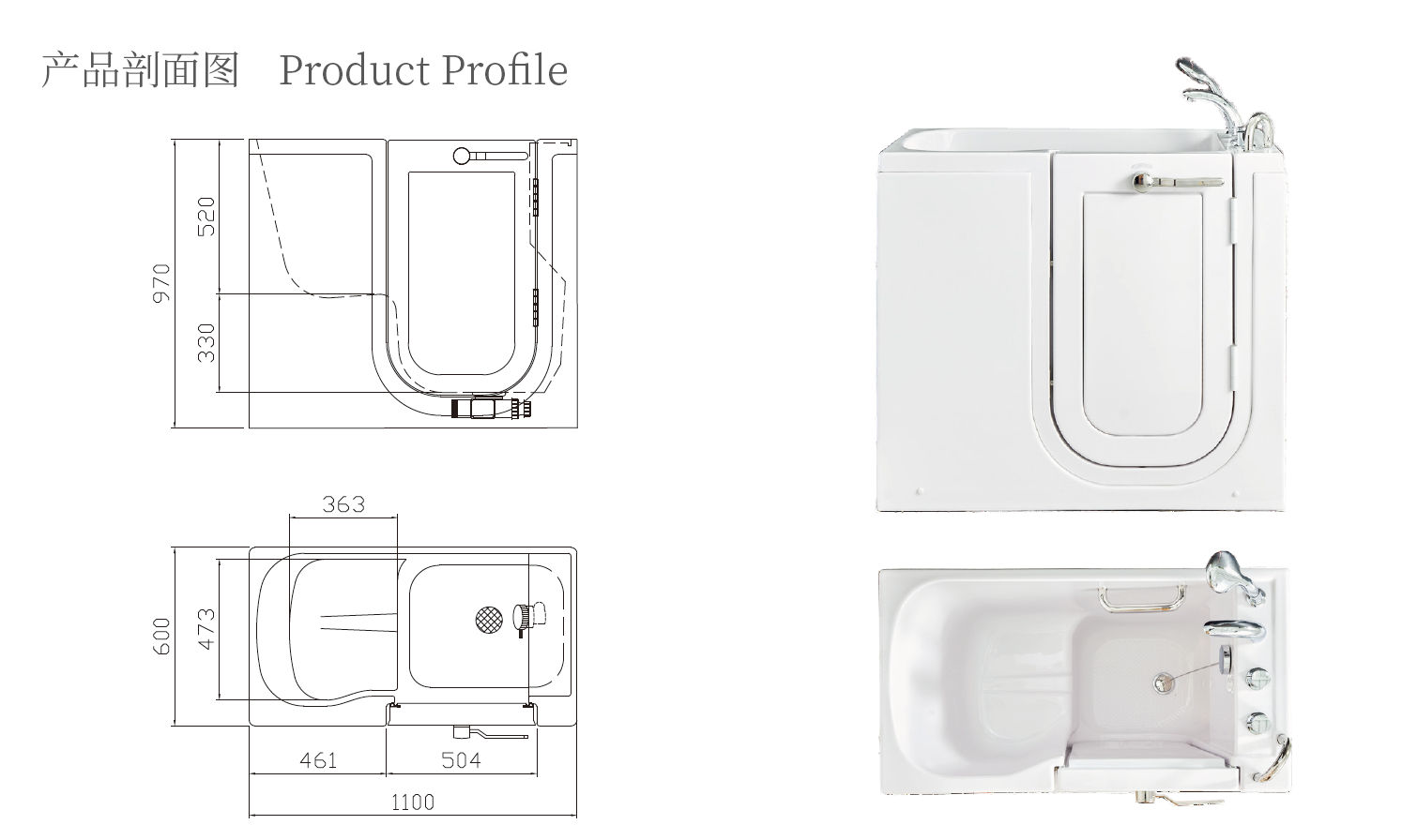 無障礙開門浴缸,長(zhǎng)1米1,寬60厘米,適用于各種老舊浴室改造。長(zhǎng)者使用安全,舒適體驗(yàn)