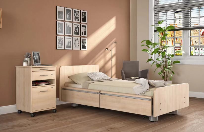 Sentida SC 護(hù)理床還提供多種令人印象深刻的定制選項(xiàng),不僅能有效防止跌倒,還能促進(jìn)住戶的活動(dòng)能力。請(qǐng)沉浸在 Sentida SC的世界中,了解它是如何改善住院者的生活質(zhì)量和護(hù)理人員的工作。 低位 23 厘米--安全睡眠,不限制個(gè)人需求。 23 厘米低位提供 ?外觀溫馨,無(wú)干擾、 ?合理的解決方案,不會(huì)讓住戶感到受限、 ?住戶仍可憑借自己的力量安全地站起來(lái)