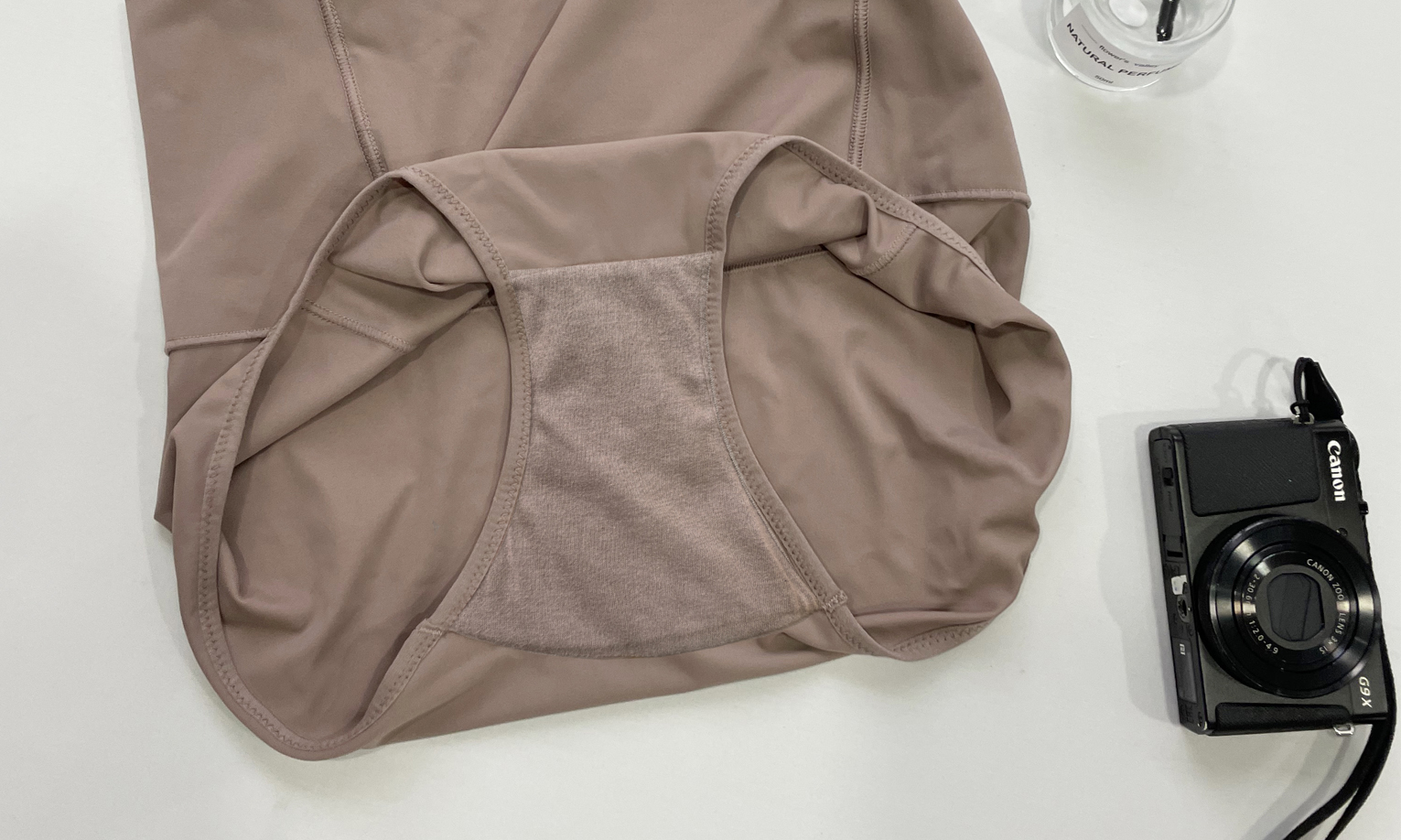 該內(nèi)褲用手感舒適的透氣錦氨面料,底襠里襯純棉。腹部雙層結(jié)構(gòu),以達(dá)到輕塑身效果。