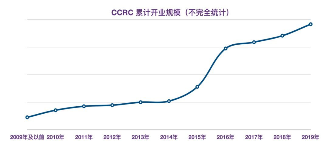 同時(shí)我們也觀察到,床位建設(shè)增長率自 2016 年起快速下降。政府積極調(diào)整養(yǎng)老政策,目的從單純的追求床位數(shù)量增長,轉(zhuǎn)變?yōu)楣膭?lì)護(hù)理型養(yǎng)老機(jī)構(gòu)發(fā)展。據(jù)不完全統(tǒng)計(jì),截止目前,全國已開業(yè) CCRC 項(xiàng)目累計(jì)總建筑面積逾 1000 萬平方米, 2015-2016 年期間增長速度最快。近兩年,CCRC 的發(fā)展仍有小幅上漲的趨勢。