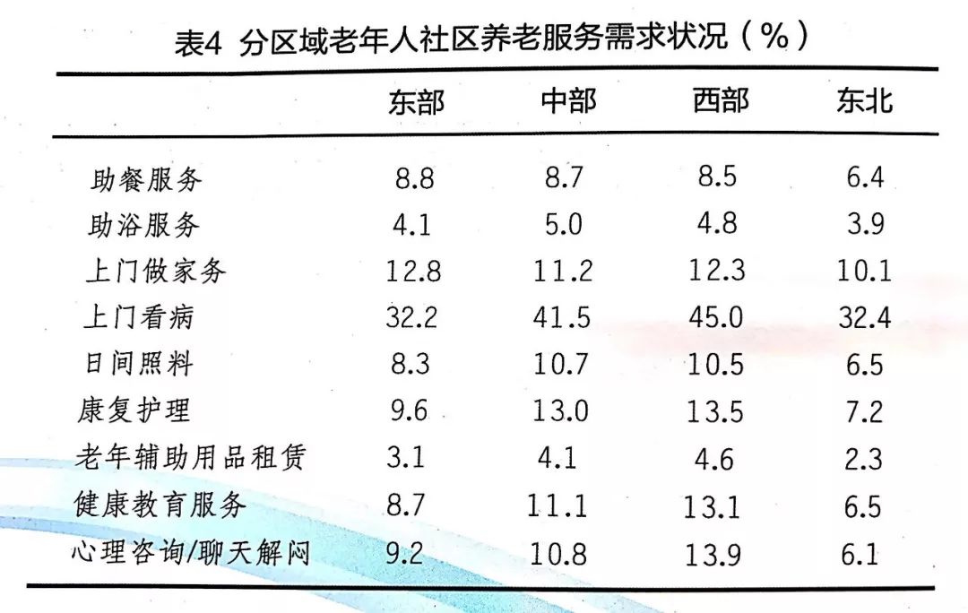 (1)分城鄉(xiāng)、區(qū)域老年人需求狀況