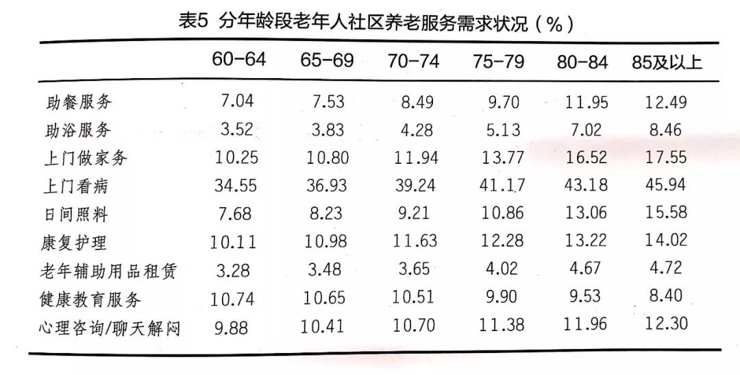 (2)分年齡老年人需求狀況