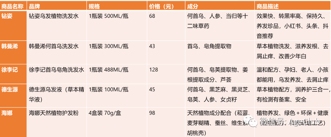 從代表性產品來看,都是以純天然、中草藥成分為主要賣點。