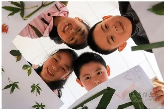 在“銀巢”學(xué)習(xí)的孩子們展示自己的樹葉畫作品。