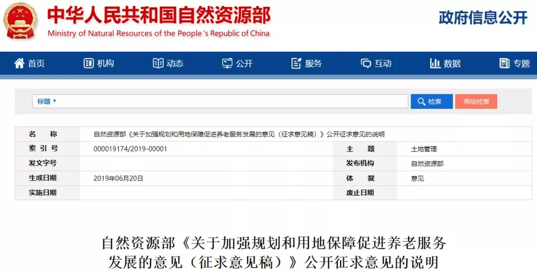 為貫徹落實(shí)《國(guó)務(wù)院辦公廳關(guān)于推進(jìn)養(yǎng)老服務(wù)發(fā)展的意見》(國(guó)辦發(fā)〔2019〕5號(hào))精神,合理規(guī)劃養(yǎng)老服務(wù)設(shè)施空間布局,切實(shí)保障養(yǎng)老服務(wù)設(shè)施用地需求,規(guī)范養(yǎng)老服務(wù)設(shè)施用地利用,積極促進(jìn)養(yǎng)老服務(wù)發(fā)展,自然資源部起草了《關(guān)于加強(qiáng)規(guī)劃和用地保障促進(jìn)養(yǎng)老服務(wù)發(fā)展的意見(征求意見稿)》?,F(xiàn)公開征求社會(huì)各界意見,有關(guān)單位和社會(huì)各界人士可以通過(guò)以下兩種方式提出意見: