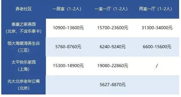 小編整理了不同養(yǎng)老社區(qū)在熱門城市的價格,看下具體的價格體系是怎么樣的: