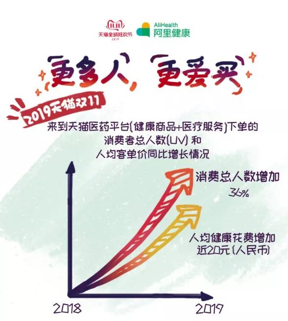 據(jù)阿里健康數(shù)據(jù)統(tǒng)計(jì),今年“雙十一”,我國健康類消費(fèi)人均增長20元(人民幣),不僅意味著越來越多人注重健康方面的消費(fèi),同時(shí)也說明醫(yī)藥平臺(tái)在今年“雙十一”也十分賣力地參與。