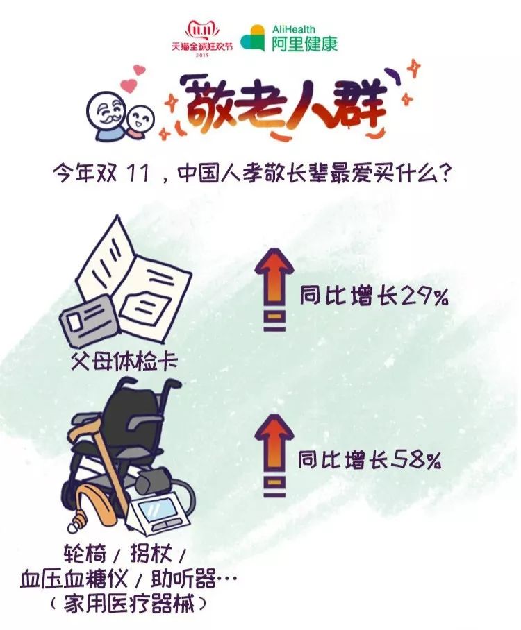 剛剛新鮮出爐的阿里健康統(tǒng)計(jì)數(shù)據(jù),來看看人們今年“雙十一”在養(yǎng)老醫(yī)療、保健方面買了什么吧。