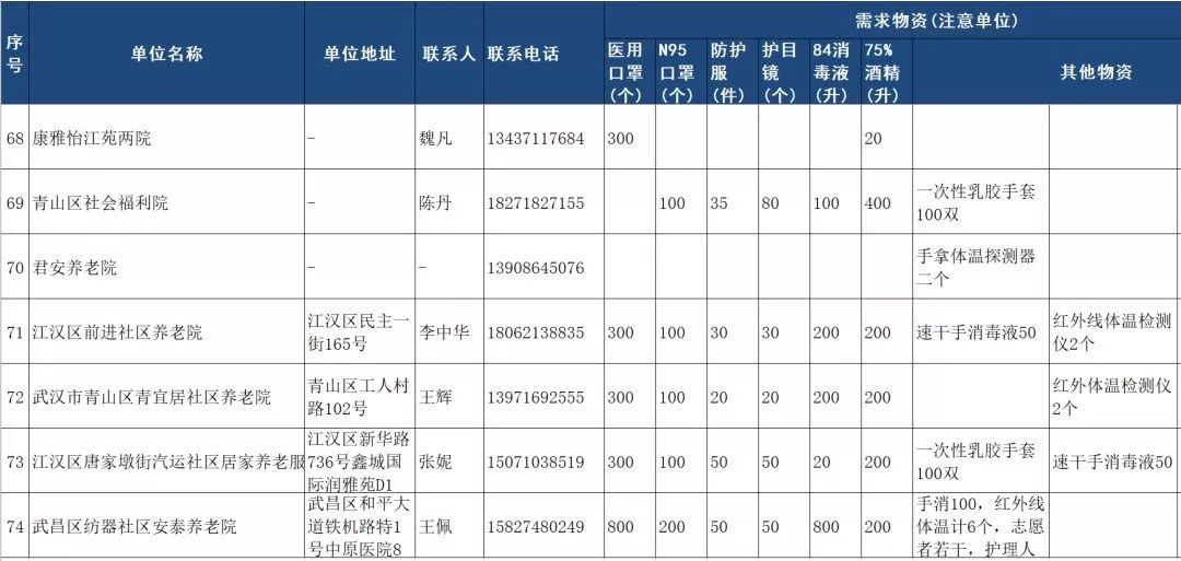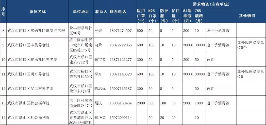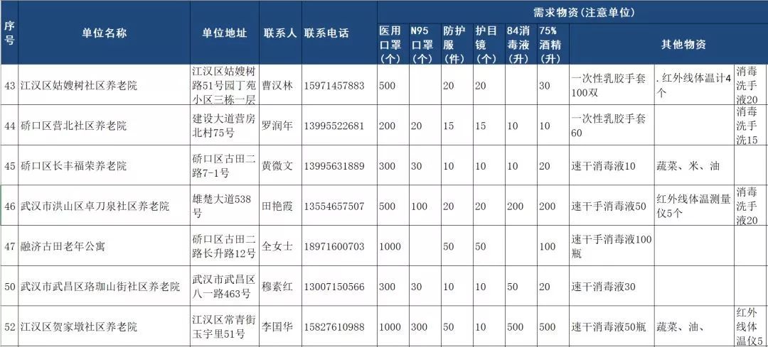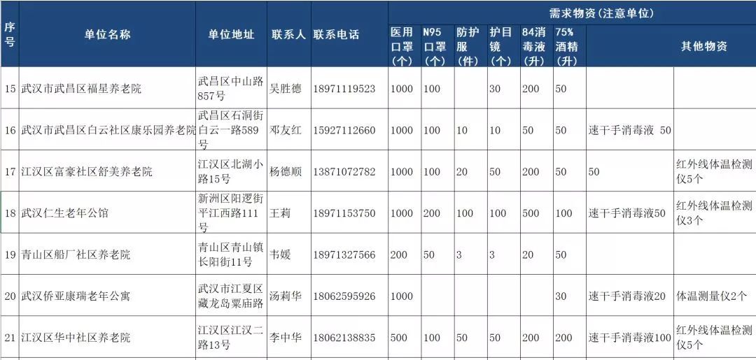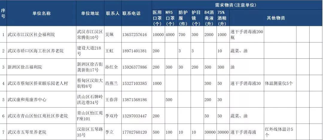 1. 主動(dòng)收集疫區(qū)養(yǎng)老(醫(yī)養(yǎng))機(jī)構(gòu)物資需求詳情