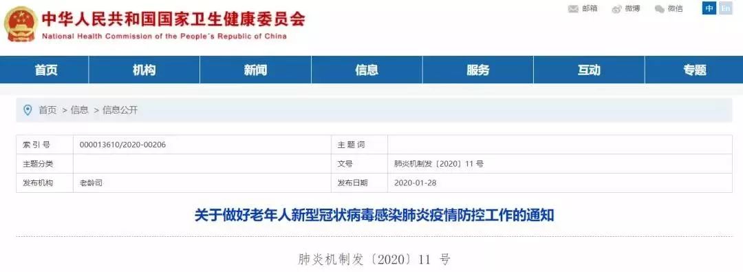 關(guān)于做好老年人新型冠狀病毒感染肺炎疫情防控工作的通知