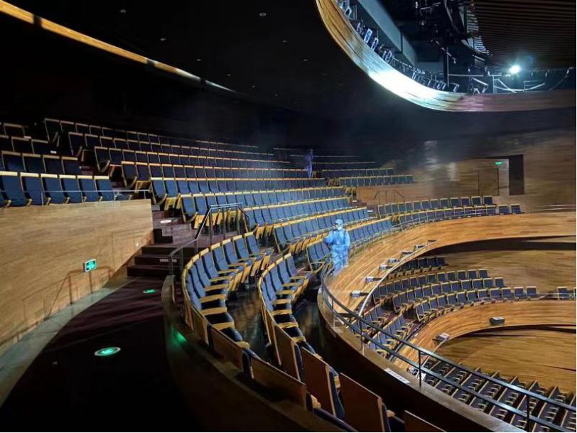 保利影院對公共區(qū)域進(jìn)行消毒