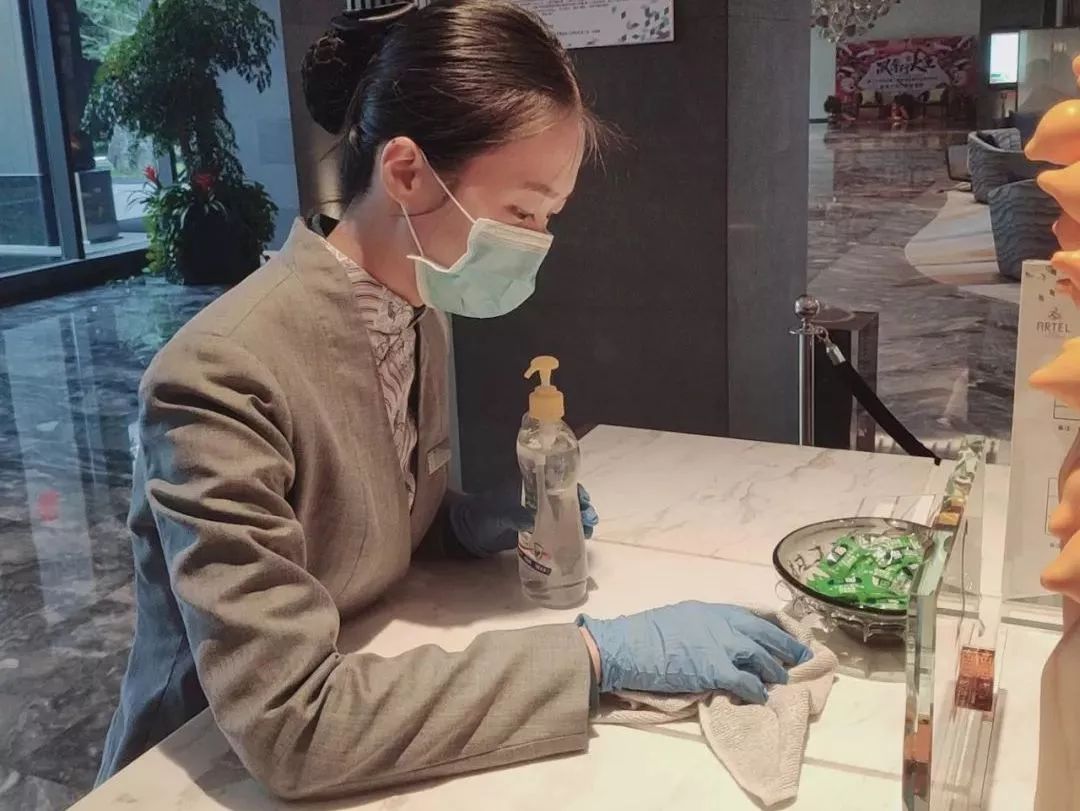 保利發(fā)展控股集團(tuán)旗下酒店為客人提供一次性防御口罩、免洗消毒液、消毒濕巾等用品,并對(duì)賓客進(jìn)行體溫檢測(cè)。全面對(duì)公共區(qū)域進(jìn)行徹底的清潔消毒。為奮斗在一線的保利酒店員工提供培訓(xùn)與防護(hù)物資。