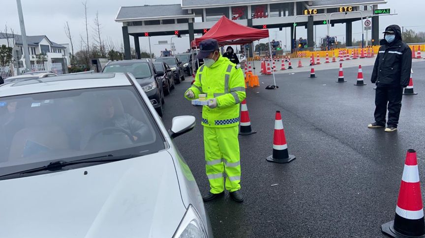 保利物業(yè)配合天凝鎮(zhèn)政府對(duì)高速入城口進(jìn)行人員防控