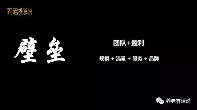 最后一個詞是“壁壘”,這是很多老板或企業(yè)創(chuàng)始人愈加關(guān)注的點,因為在當(dāng)前中國養(yǎng)老“同質(zhì)化”的大環(huán)境下,必須為長遠發(fā)展建立足夠有效的競爭壁壘,這個壁壘短期內(nèi)是“床位規(guī)?!?,未來是擁有的“客戶流量”,“服務(wù)能力”,最終是“品牌”。當(dāng)然,還有另外一個“亙古不變的商業(yè)壁壘——成本優(yōu)勢”,用360董事長周鴻祎的話說,把成本降下來是最大的商業(yè)創(chuàng)新。