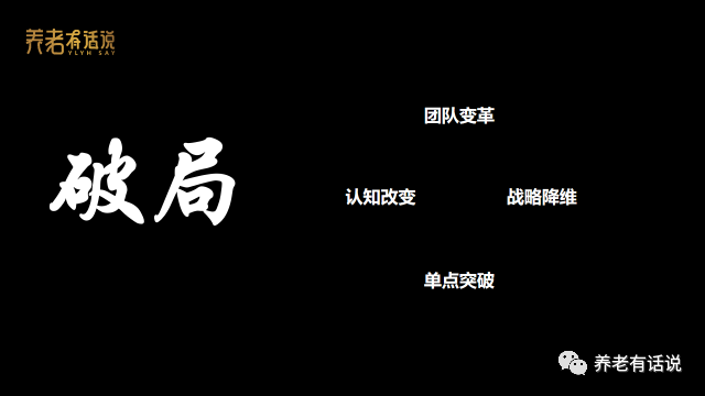 1、“團隊變革”:很多企業(yè)逐漸意識到,破局的關(guān)鍵在于“換人”,當(dāng)前中國養(yǎng)老行業(yè)遇到的核心問題并不是“服務(wù)品質(zhì)”、“運營經(jīng)驗”、“人員匱乏”,而是“不盈利”、“難盈利”、“利潤低”。因此,這個行業(yè)最稀缺的是具有“生意思維”的操盤者,“經(jīng)營能力”的院長,而我們早期看重的“行業(yè)經(jīng)驗”往往顯得并不那么重要,因為這些經(jīng)驗的背后往往都是那些“并不盈利的,經(jīng)營失敗的項目”。對于一個養(yǎng)老企業(yè),一個養(yǎng)老項目,最大的風(fēng)險是“不盈利”。2、“認知改變”:團隊變革帶來的最大益處是“認知改變”,我們開始從生意的角度去看養(yǎng)老,而非“不考慮經(jīng)營的運營”;我們開始從人性的需求去找業(yè)務(wù)創(chuàng)新點,而非“一提養(yǎng)老,就是照護,就是剛需”;我們開始用跨界思維嘗試構(gòu)建“資產(chǎn)+金融+產(chǎn)品+服務(wù)”的商業(yè)模型,而非“亙古不變的月費模式”。3、“戰(zhàn)略降維”:第三個破局的關(guān)鍵在于“戰(zhàn)略降維”,我們不再“輕信”那些花里胡哨的“戰(zhàn)略模型”,更不再“迷戀”既往的成功經(jīng)驗,而是放下身段,在“戰(zhàn)術(shù)層面”找到更多行之有效的“打法”。4、“單點突破”:最后是“單點突破”,“單項目突破”,“單產(chǎn)品線突破”,要在某一個點上打透,打磨,最終找到可商業(yè)化復(fù)制的路,而非機構(gòu)、社區(qū)、居家、醫(yī)療都鋪開做,最終都成為“運營的包袱”。