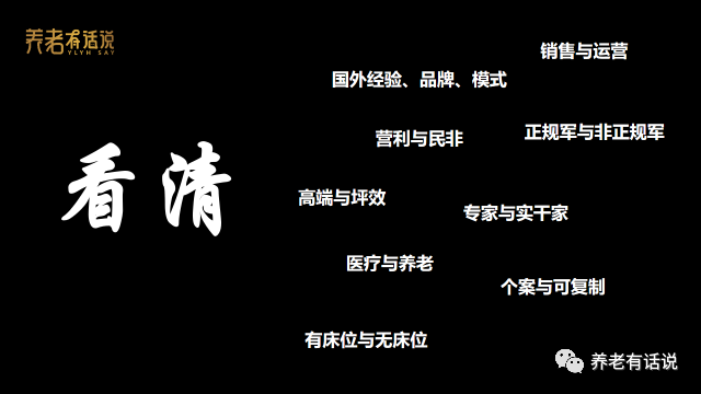 中國人還是習(xí)慣把春節(jié)作為“一年的分水嶺”,如此,我們迎來2019-2020的更替,在這個辭舊迎新的節(jié)點上,我們看到中國養(yǎng)老行業(yè)也在暗涌中發(fā)生著深刻地變革。身在其中的我們,有可能在變革中被拋棄,也有可能在變革中迎來新的機遇,所以不要說2019是“最壞的一年”,每個時代都有機會。如果用4個詞去回顧2019,展望2020,我想是——看清、破局、跨界、壁壘。