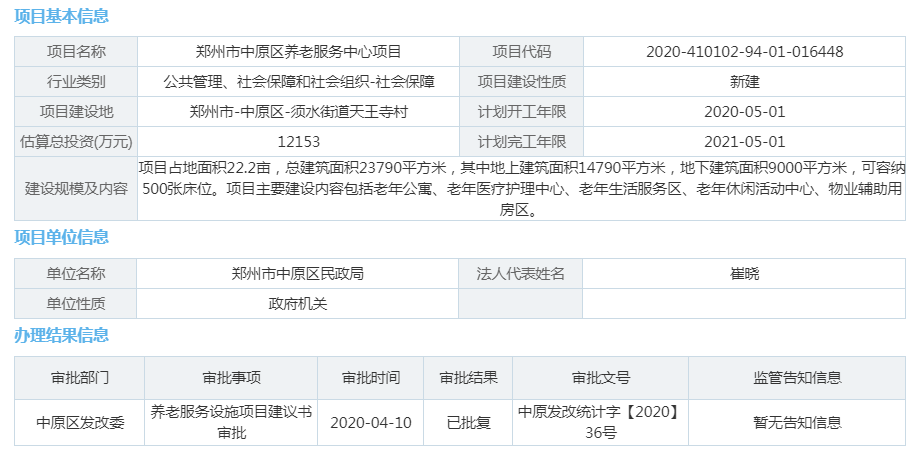 大河財(cái)立方消息4月10日,據(jù)河南省投資項(xiàng)目在線審批監(jiān)管平臺(tái)發(fā)布,鄭州市中原區(qū)養(yǎng)老服務(wù)中心項(xiàng)目獲批復(fù)。
