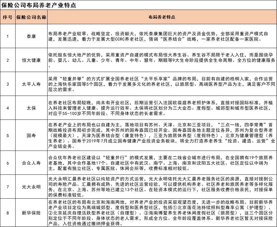 4.各家險(xiǎn)企布局養(yǎng)老產(chǎn)業(yè)特點(diǎn)