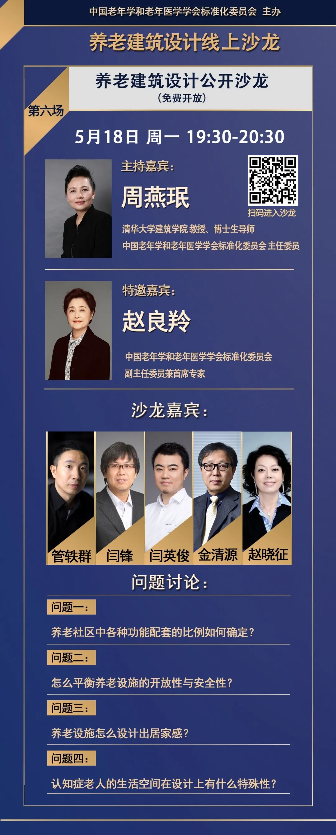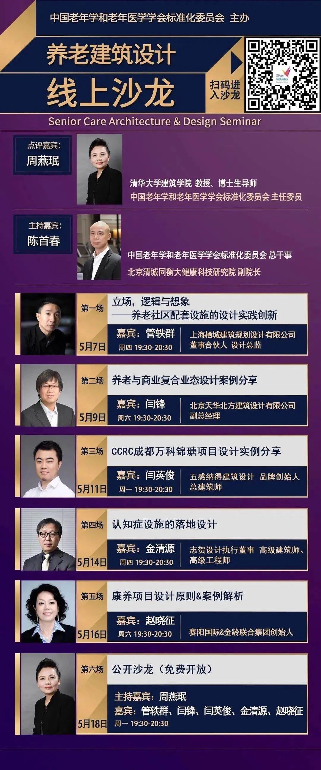 溫馨提示:這是一場對公眾免費(fèi)公開的線上沙龍,無論您是建筑設(shè)計師、養(yǎng)老運(yùn)營人、投資開發(fā)方還是部品設(shè)計商,歡迎掃描海報中的二維碼加入養(yǎng)老建筑設(shè)計的討論當(dāng)中!