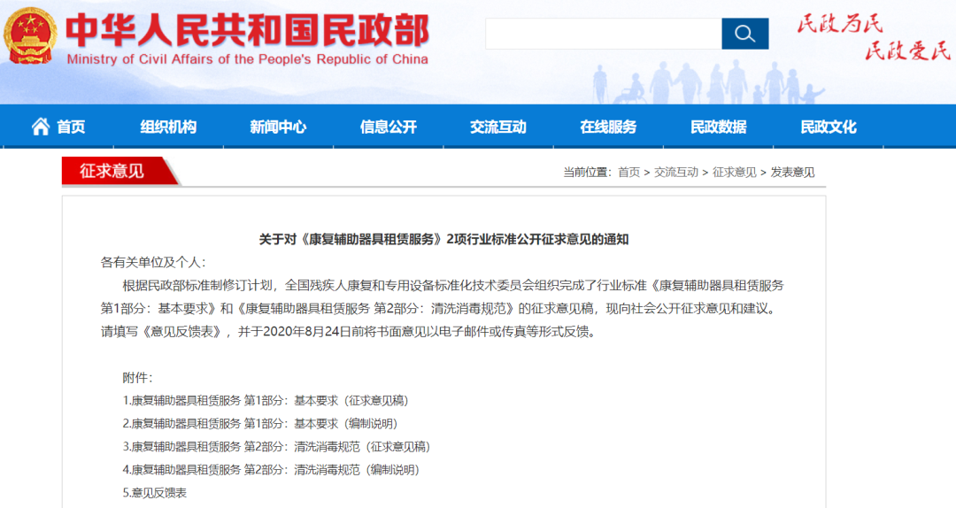 民政部公布康復(fù)輔具租賃服務(wù)首個(gè)行業(yè)標(biāo)準(zhǔn)(征求意見稿)