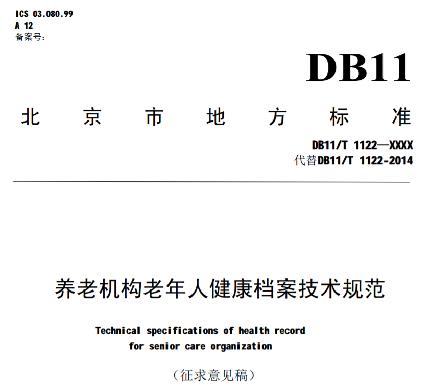 北京發(fā)布《養(yǎng)老機(jī)構(gòu)老年人健康檔案技術(shù)規(guī)范》(征求意見稿)