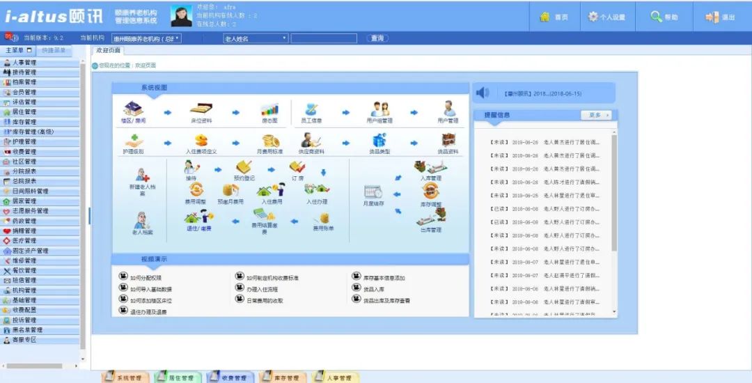 管理養(yǎng)老機(jī)構(gòu)內(nèi)部的信息和業(yè)務(wù),規(guī)范有關(guān)業(yè)務(wù)流程;老人住前、入住、院內(nèi)生活、護(hù)理和健康檔案等一體化全程系統(tǒng)管理;內(nèi)部事務(wù)、人事考勤、庫存等電腦化管理;功能強(qiáng)大,操作簡(jiǎn)單不易出錯(cuò)的收費(fèi)管理;真正幫助養(yǎng)老機(jī)構(gòu)起到系統(tǒng)化、自動(dòng)化管理的作用。