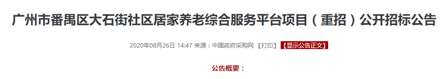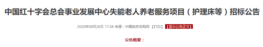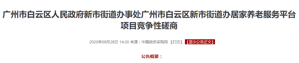 近期,中國政府采購網(wǎng)陸續(xù)發(fā)布多個養(yǎng)老項目采購公告,詳情如下: