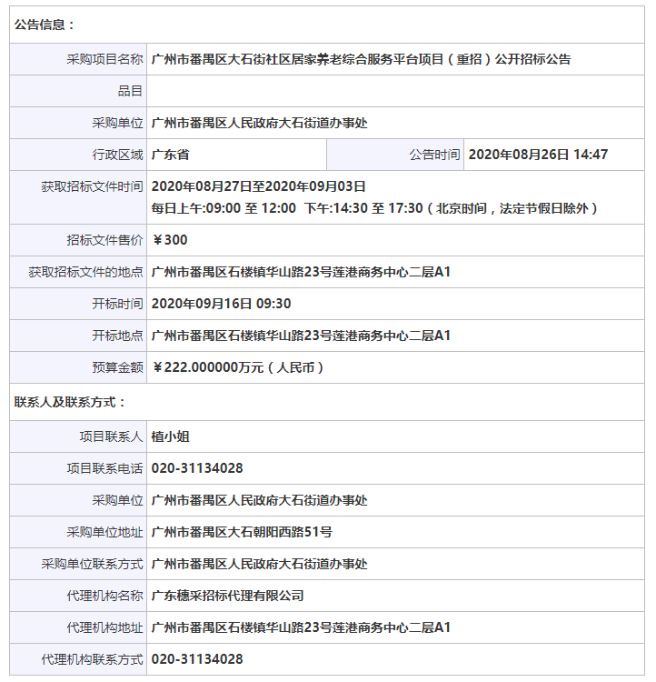 項目名稱:廣州市番禺區(qū)大石街社區(qū)居家養(yǎng)老綜合服務(wù)平臺項目
