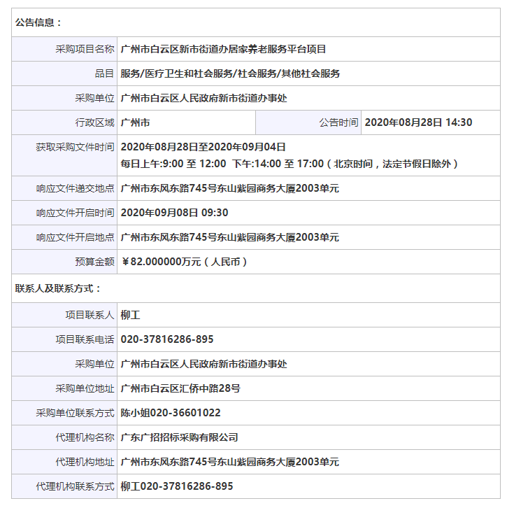 項目名稱:廣州市白云區(qū)新市街道辦居家養(yǎng)老服務(wù)平臺項目