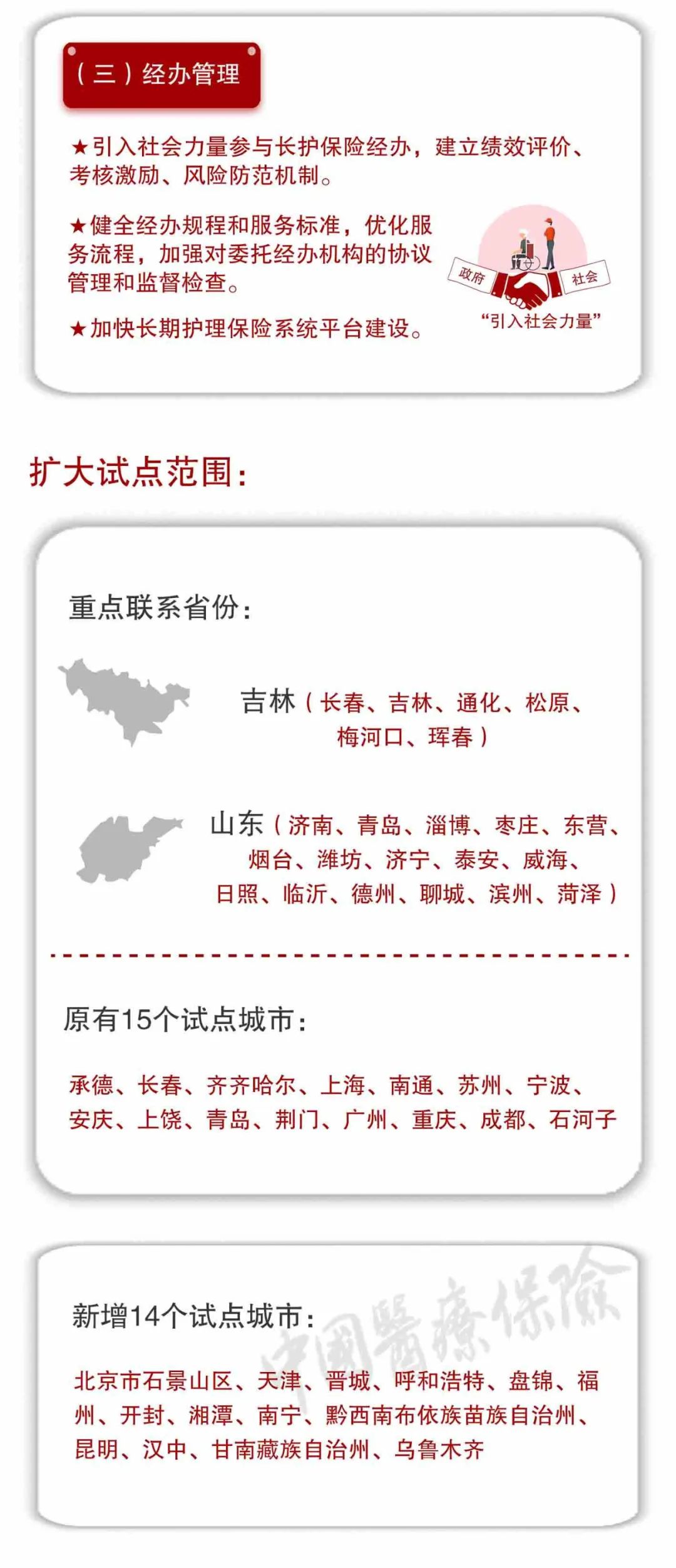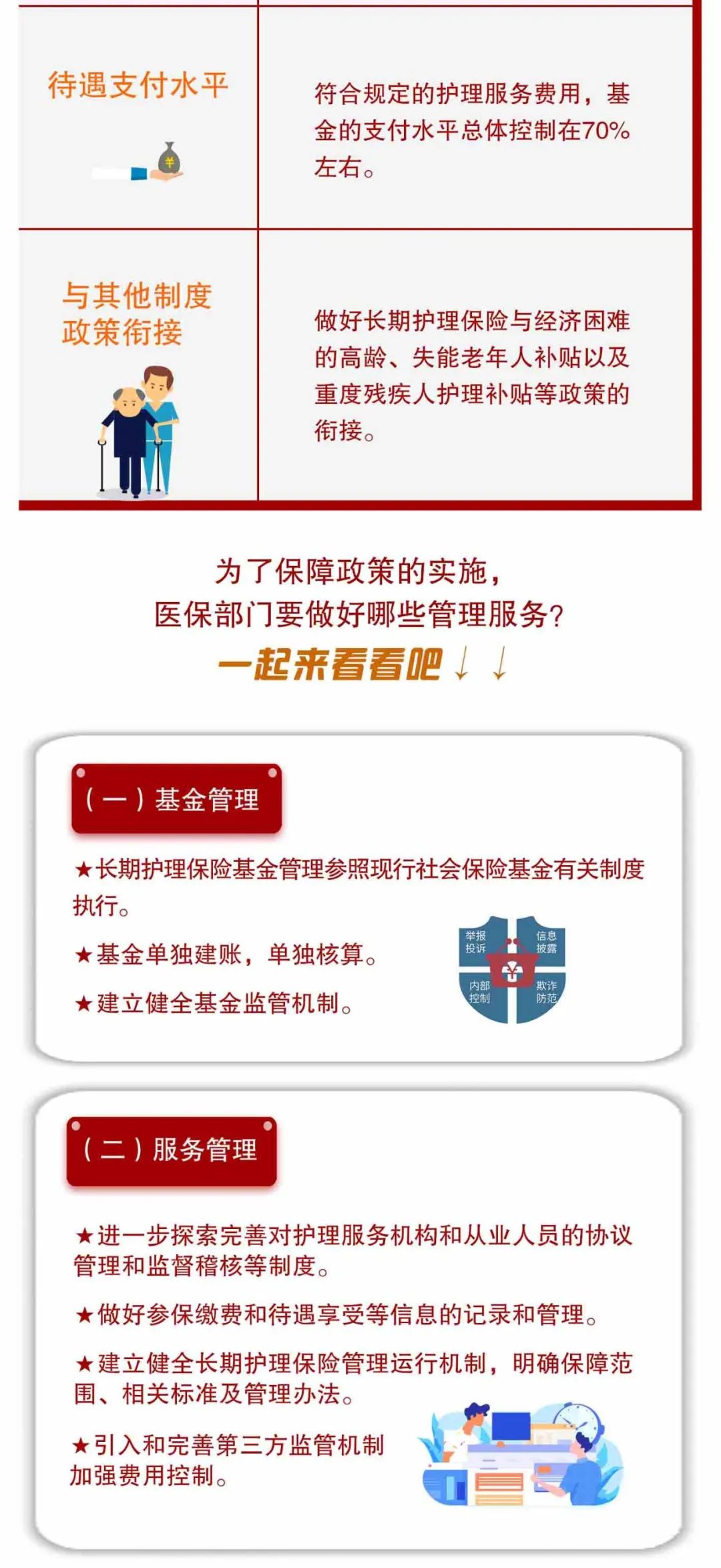 加強基金管理、服務(wù)管理和經(jīng)辦管理,以試點為切入口探索社會保險領(lǐng)域治理創(chuàng)新,確保基金安全,為人民群眾提供便捷高效的長期護理保障。明確3方面安排: