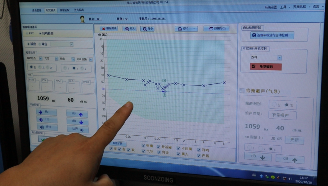 根據(jù)測(cè)試出的曲線耳鳴位點(diǎn),系統(tǒng)會(huì)自動(dòng)生成聲音處方,也就是適合的治療聲音。