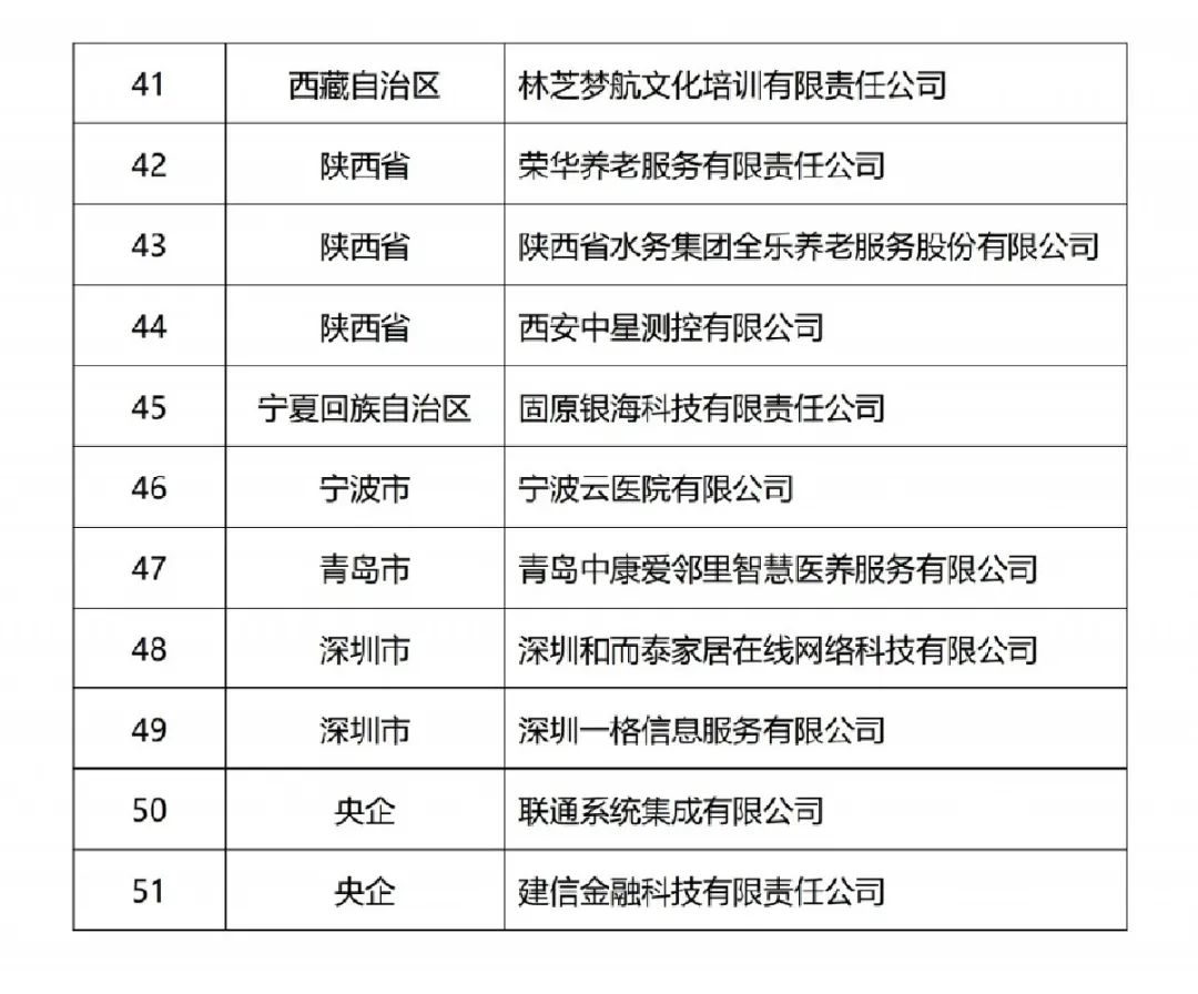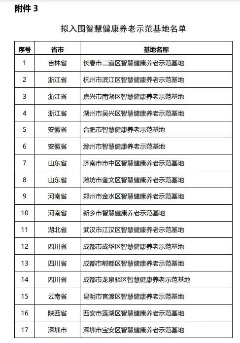 國(guó)家第四批智慧健康養(yǎng)老應(yīng)用試點(diǎn)示范名單公示